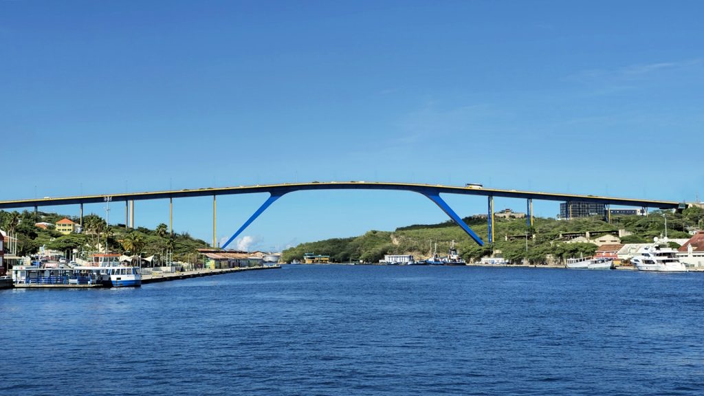 El Puente de la Reina Juliana es uno de los puentes más emblemáticos de Curazao, conocido por su impresionante altura y su importancia histórica. Este puente de cuatro carriles cruza la Bahía de Santa Ana en Willemstad, conectando los barrios de Punda y Otrobanda. Tiene una altura de 56.4 metros (185 pies) sobre el nivel del mar, lo que lo convierte en uno de los puentes más altos del mundo.